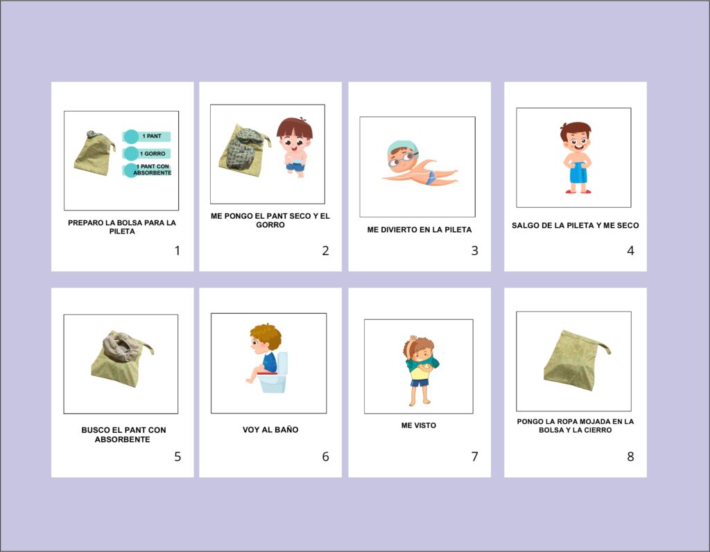 Por eso, Eco Party articula su propuesta textil con juegos sensoriales, pictogramas y materiales de apoyo, integrados en espacios de juego y exploración que permiten observar, probar y adaptar recursos según cada necesidad. A continuación compartimos una rutina de hidroterapia, que podes descargar e imprimir.