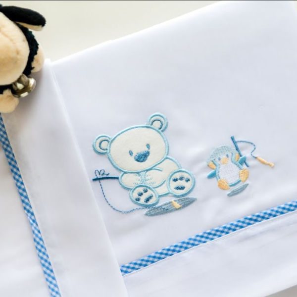 Sábana plana delicadamente bordada en colores para niño, niña o neutro. Terminaciones de sábanas y fundas exclusivas. Incluye sábana bordada + sábana blanca ajustable de medidas 70 x 110 cm (máxima medida colchón 50 x 95 cm) + funda almohada